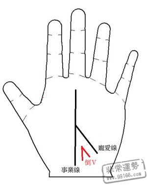 假如会合处下方,发现倒V字纹,更是可遭到身分位置悬殊的异性帮助,天赐奇缘。但宠爱线可不能穿越生命线,否则但是爱情「先成后败」之意了。
