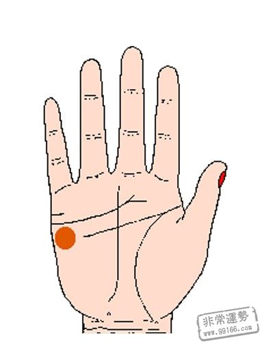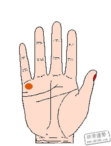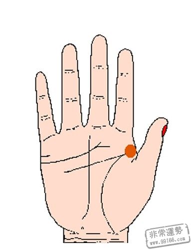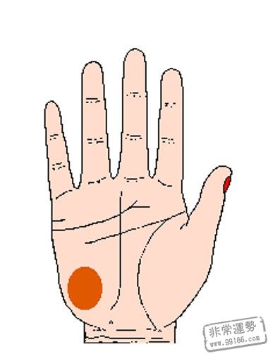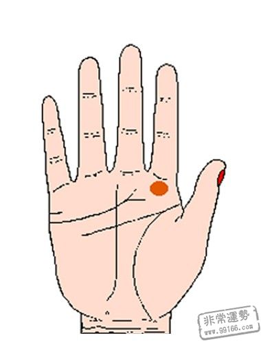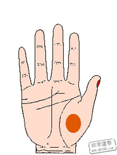 金星丘坐落在拇指下方,生命线内侧,代表着健康和生机。此处兴旺丰满,色彩光润的人性善心慈,很有爱心,喜爱运动,精力比较充分,很会享用日子。一般不会沉迷于挣钱中,不会为钱而累,只需够自己日子就行,因而在日子中他们往往是浪漫和洒脱的。假设此低陷的话,意味着自己比较狷介,不仰慕比自己有钱的人。