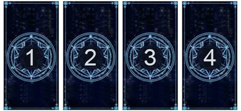 塔罗占卜规矩:请坚持心里安静的情况,在心中想着那个人,而且默念:“我该用什么招数诱惑Ta呢?”然后从下面四张牌中凭感觉选出一张来,牢记不行成心挑选,不行重复挑选。