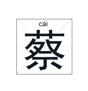 蔡字的五行为木,因而,蔡姓人姓名中的榜首个字一般来说忌用“金”、“土”五行的字。