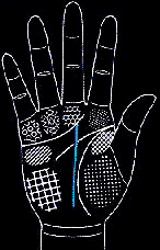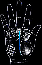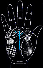 朝中指延伸,并有支线向食指与无名指延伸: