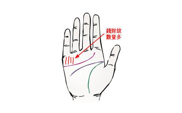 财气线有许多条并且都是很明晰很深直没有其他旁线搅扰,这样的财气线在手相中是最好的财气线,基本上一切的富豪都是具有这样的财气线。有这样财气线的人他们在生活中不论做什么工作都是比他人顺畅,并且在生活中总是具有许多挣钱的时机,所以他们会具有很好的财气。